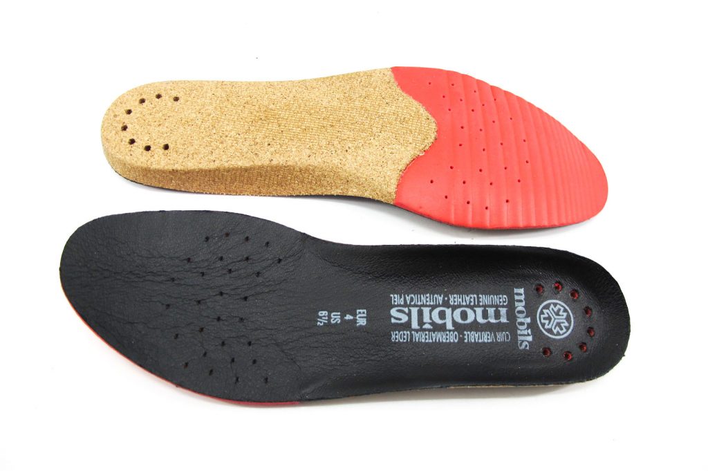 La plantilla extraíble de Mobils esta fabricada sobre una base de corcho natural en el medio pie trasero y un acolchado de latex en el medio pie delantero.