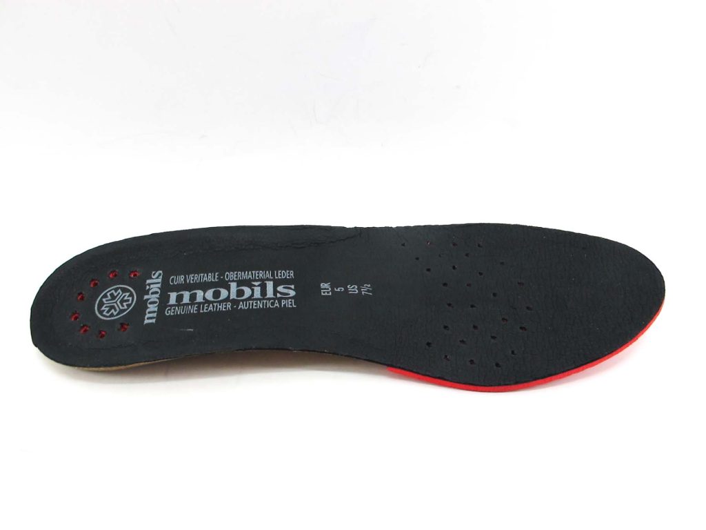El zapato modelo Bathilda de Mobils, es un desarrollo de la marca de Mephisto con suela en forma de cuña, el material utilizado en esta suela es el caucho expandido o de baja densidad. Las propiedades del caucho le mejoran la amortiguación, adherencia así cómo la flexibilidad.